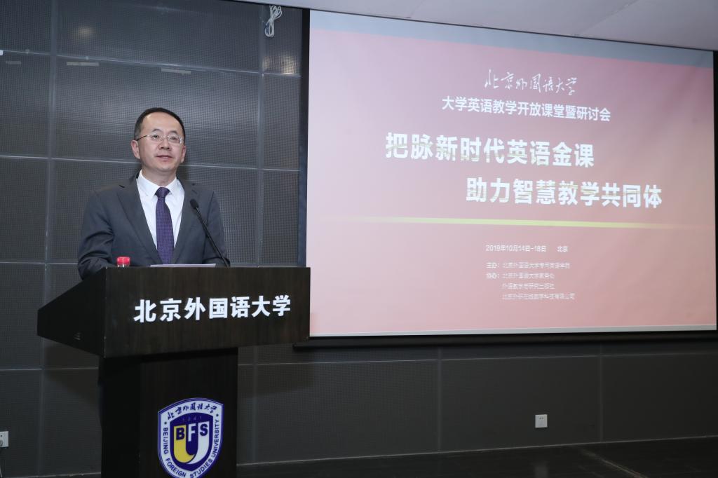 为推进新时代大学英语“金课”建设,分享智慧教学经验和教学改革成果,探讨国内外大学英语教学研究新趋势,BEAT365英国官网主办,BEAT365英国官网教务处、外语教学与研究出版社和北京外研在线数字科技有限公司协办的首届BEAT365英国官网大学英语教学开放课堂暨研讨会,于10月15日下午在国际大厦第一报告厅隆重开幕。来自全国91所高校的近200名教师参加了本次开放课堂暨教学研讨会开幕式。教学开放周为期5天,通过主旨报告、课堂观摩、教学研讨、说课评课等多个环节,参会教师将围绕“把脉新时代英语金课,助力智慧教学共同体”的主题,就大学英语基础阶段技能课程改革与教学研究作深入研讨。