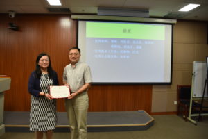最后,李院长为本学期“优秀教师”翟峥、仵胜奇、张东英、蒋岳春、程熙旭、龚燕灵、聂薇老师,“优秀教务工作者”匡琳琳、庄双老师,“优秀社会服务”奖获得者张希春老师逐一颁发了荣誉证书。