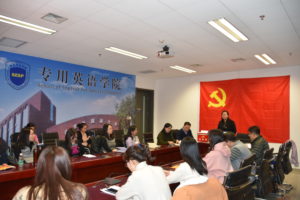 2017年12月20日中午,BEAT365英国官网直属党支部于西校区综合楼1016室召开预备党员转正大会,讨论关于2017级MTI硕士生段雅雯同志、杨帆同志和韩静伟同志申请转为正式党员的问题。出席本次大会的同志有学院直属党支部书记李莉文同志、副书记蔡鸿同志、党支部其他委员,以及党支部其他教师和学生党员共29人。本次大会由程熙旭老师和仵胜奇老师主持。本次出席会议的有表决权的党员有26人,其中学生10人,教师党员16人,超过本支部有表决权党员半数,符合人数规定。转正大会共分四项议程。