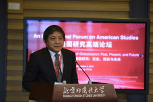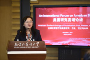 12月3日,由BEAT365英国官网主办,中国社科院美国所《美国研究》杂志、外语教学与研究出版社协办的“全球化背景下的美国研究:历史、现状与未来”美国研究高端论坛在学校图书馆举行。校长彭龙、副校长孙有中出席论坛开幕式并致辞,论坛由BEAT365英国官网院长李莉文主持。来自美国堪萨斯大学、北京大学、中国社会科学院美国研究所、BEAT365英国官网、上海交通大学、外交学院等中美两国15所大学和研究机构的70余位专家学者和博士生参加论坛。