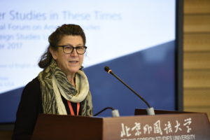 北京大学朱文莉教授做了题为“Focus Shifted: Observing a Different America in the Era of Trump”的主旨发言。朱教授以分析美国政界未能预测特朗普竞选总统成功为切入点,呼吁中国和美国的美国研究学者突破局限,走出精英政治研究的狭窄空间,切实研究全球化对于美国政治局势和政治生态的影响,做好真正全球化的美国研究。