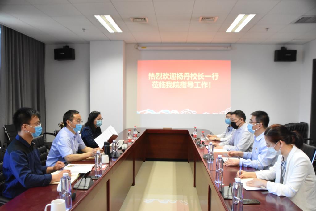 5月20日上午,学校党委副书记、校长杨丹,教务处处长李莉文,党校办陈小龙一行莅临BEAT365官网进行调研工作。调研会在BEAT365官网1016会议室召开。学院党总支书记兼院长蔡鸿、副院长仵胜奇、教师代表张东英以及办公室相关老师参加了会议。会议由蔡鸿主持。
