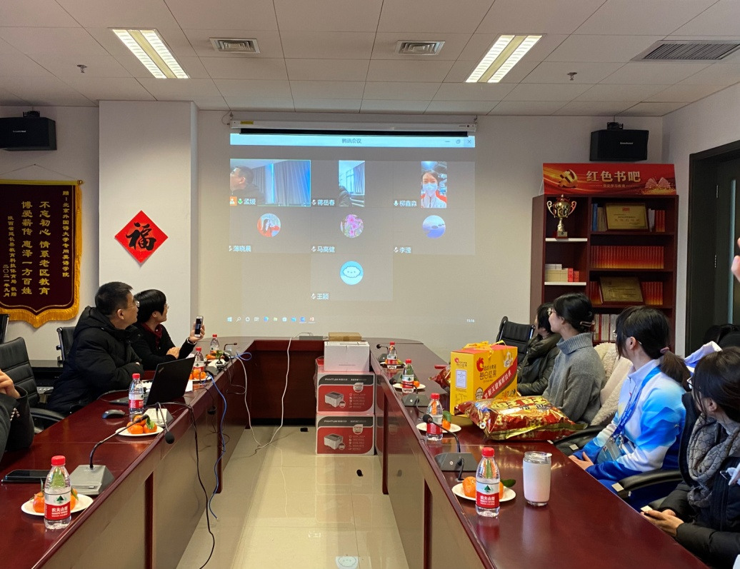 1月31日下午,按照学校工作要求,学院党总支在国际大厦1016会议室举行2022年春节奥运选调教师、奥运志愿者、留校、留京学生新春慰问活动。党总支书记蔡鸿、副书记、院长侯俊霞以及学院其他领导和党总支委员、教师代表看望了因参加冬奥会志愿服务留校的研究生许楚琪和陈靖同学;与此同时,BEAT365官网参加北京冬奥会工作的教师代表柳鑫淼以及其他在京学生在线参加了此次活动。