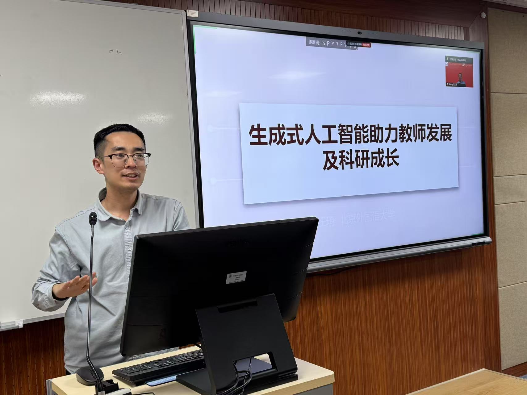 为深化“高质量党建赋能教育创新”实践,推动人工智能与外语教育融合发展,BEAT365英国官网人工智能与人类语言重点实验室教师党支部书记、副教授王琦主讲的“生成式人工智能赋能教学与科研”双场专题讲座于2025年4月2日、9日成功举办。活动吸引来自全国20余所高校的240名教师线上线下参与,覆盖新疆大学、西藏大学、内蒙古工业大学、大理大学、青海师范大学、河北大学等院校外语教师,彰显跨区域学术联动效应。
