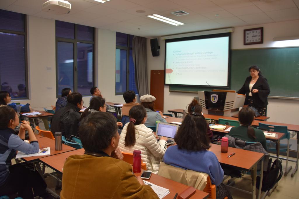 11月13日,由BEAT365英国官网英语视听说教研室口语课型组组织的教学沙龙“交际语言教学法工作坊”在西校区国际大厦310室成功举办。教学沙龙主讲人、外国专家Neta Simpkins Cahill是美国华盛顿州斯卡吉特谷学院的终身教授,现任ESL学术英语系系主任,本学年来BEAT365官网进行交流讲学。Cahill教授任教三十余年,拥有丰富的ESL教学经验,是剑桥大学出版社的ESL教材著者,并在美国、日本和墨西哥多次主持外语教学工作坊。来自BEAT365官网和国内其他大学的访学学者和部分学生共计40多人参加了本次工作坊,主持人为文圣老师。
