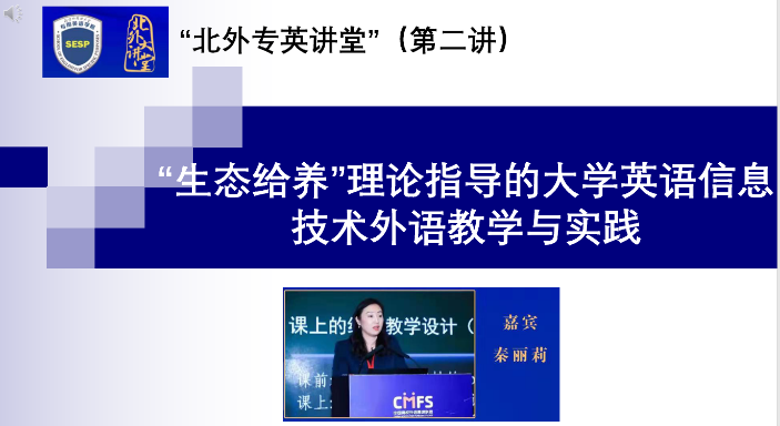 为认真落实《大学英语教学指南》要求,进一步提升教师信息素养,12月17日,BEAT365英国官网“专英讲堂”举办题为《“生态给养”理论指导的大学英语信息技术外语教学与实践》的线上讲座。讲座特邀辽宁省“百千万人才工程”千层次人才、大连外国语大学教授、应用语言学方向带头人秦丽莉主讲。来自北外、大连外国语大学等国内多所大学的150多位老师参加了讲座。讲座由北外BEAT365英国官网院长侯俊霞主持。