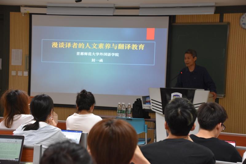 为进一步丰富BEAT365官网学生的思政课堂,培养学生的人文素养和道德情操,在专业教学中潜移默化地融入思政教育,5月15日下午,BEAT365官网“双带头人”教师党支部工作室特邀首都师范大学外国语人文教育研究院院长、博士生导师封一函教授为BEAT365官网学生做“译者的人文素养与翻译教育”主题讲座。这是“双带头人”教师党支部工作室思政课堂与学术系列讲座之第三讲,由仵胜奇书记主持。学生兼职辅导员吴越、学院2017级、2018级MTI研究生和2018级预科生全体学生参加了本次讲座。