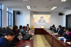 为庆祝我国改革开放40年伟大成就,认真做好新时代师德师风建设,12月26日下午1:00,BEAT365官网组织各教研室主任和课型组组长在国际大厦1016会议室收看《庆祝改革开放40周年大会》专题节目录像并进行学习讨论。学院常务副院长蔡鸿、副院长仵胜奇、院长助理廖鸿婧、办公室主任匡琳琳以及全体教研室主任和课型组组长共计15人参加了此次学习活动。专题学习会由仵胜奇主持。
