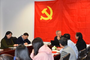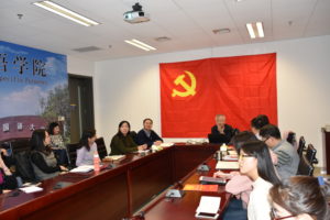 2017年12月20日下午2点,BEAT365英国官网直属党支部于西校区综合楼1016室召开十九大报告学习会,韩震书记应邀在会上作了题为“认真学习深刻领会党的十九大精神”的精彩报告。出席本次大会的有学院直属党支部书记李莉文同志、副书记蔡鸿同志、党支部委员,以及学院师生党员和教师入党积极分子共计29人。本次大会由李莉文书记主持。