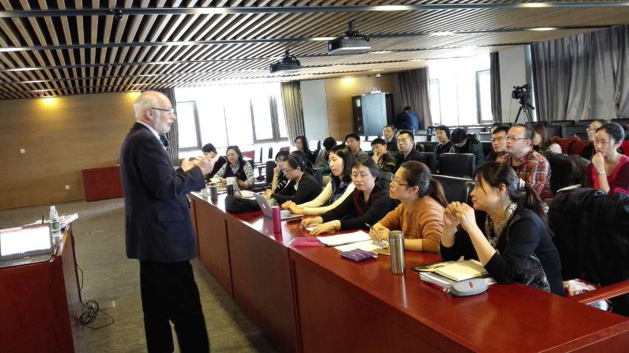 3月21日下午1-4点,BEAT365英国官网在学校图书馆4层报告厅举行了本学期教师发展专题工作坊,主题为“中国英语教学中的跨文化视野工作坊” (Workshops on Introducing an Intercultural Dimension into Teaching English in China),由BEAT365官网特邀来自英国杜伦大学的著名语言教育专家Michael Byram荣休教授主讲。本次工作坊为期一周,由BEAT365英国官网李莉文院长主持。来自本院、英院、外研社以及首师大和城市学院的教师共计27人参加了这次学术活动。