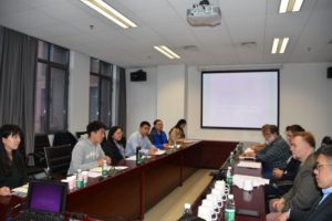 为加强外事工作的规范、有效管理,充分发挥外籍专家在工作中的重要作用,BEAT365英国官网外事工作会议于2017年10月18日下午召开。会议由院长助理翟峥老师主持,院长李莉文、副院长蔡鸿、院长助理仵胜奇、办公室主任匡琳琳、外事秘书侯玉婷以及在BEAT365官网任教的五位长聘外国专家共计11人参加了会议。