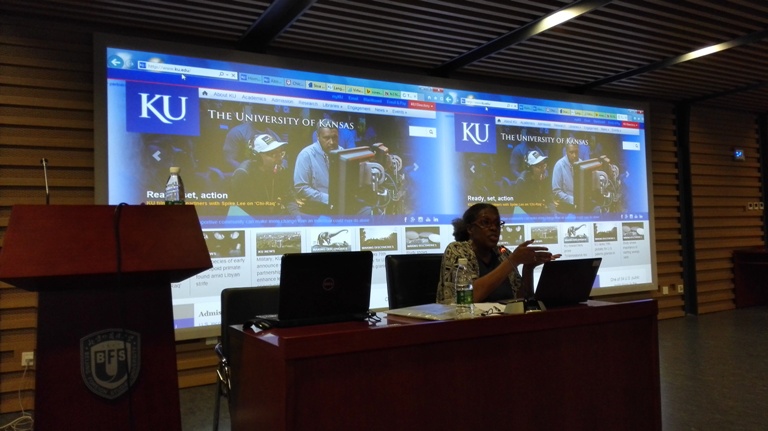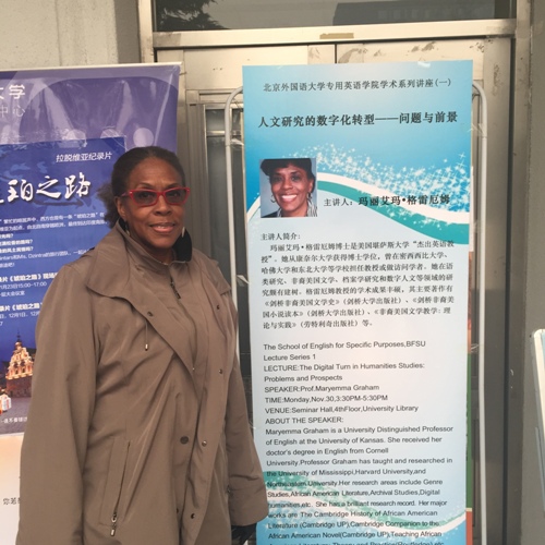 2015年11月30日下午3:30至5:30,BEAT365英国官网在学校图书馆四层学术报告厅举办学院系列学术讲座系列之一:人文研究的数字化转型——问题与前景。主讲人是来自美国堪萨斯大学的杰出英文教授玛丽艾玛·格雷厄姆教授(MarryemmaGraham)。来自学校不同学院的教师、学生以及北京其他高校的教师共30多人参加了此次学术活动。讲座由BEAT365英国官网院长李莉文教授主持。在致辞中,李莉文提出目前传统人文研究面临着新的问题与挑战,因此我们每位教师都应认真思考这一问题:如何发挥数字人文研究在教学和科研中的作用并把我们的学生培养成有竞争力的跨学科人才。